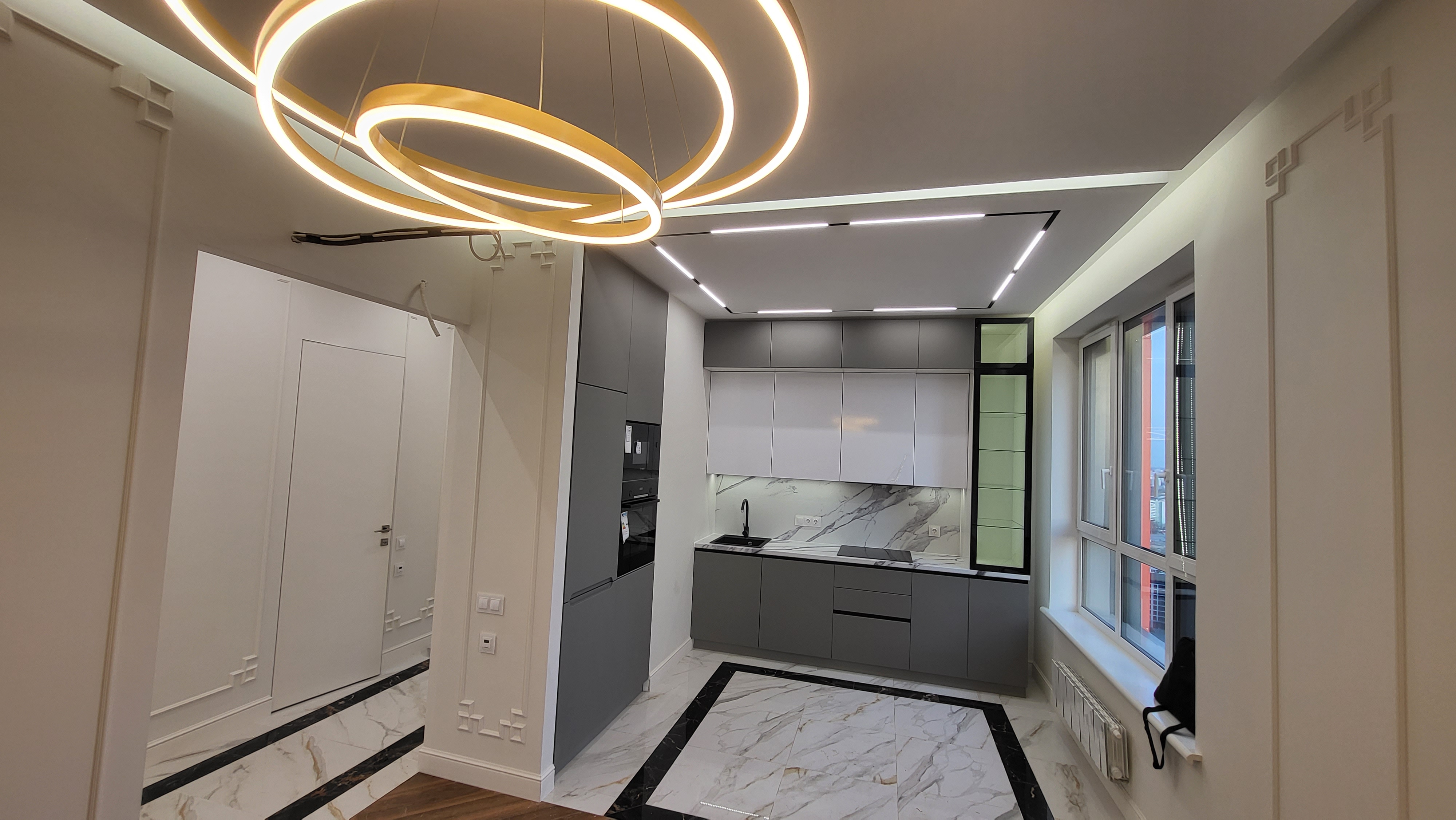 По готовности проекта - Вы получите: 1. Дизайн - проект кухни. 2. Рекомендации по размещению розеток + вывод коммуникаций. 3. Стоимость кухни в 3-х ценовых категориях.